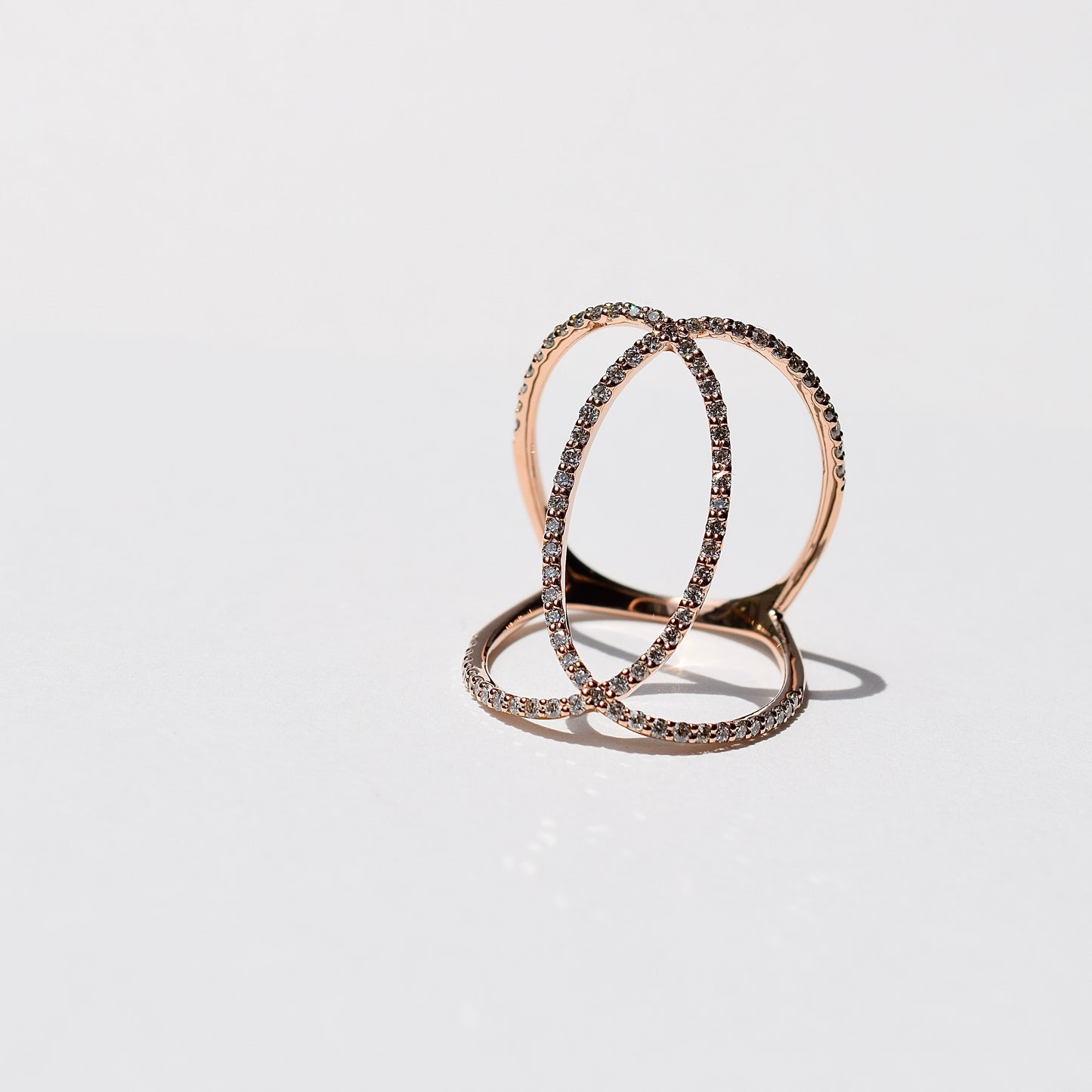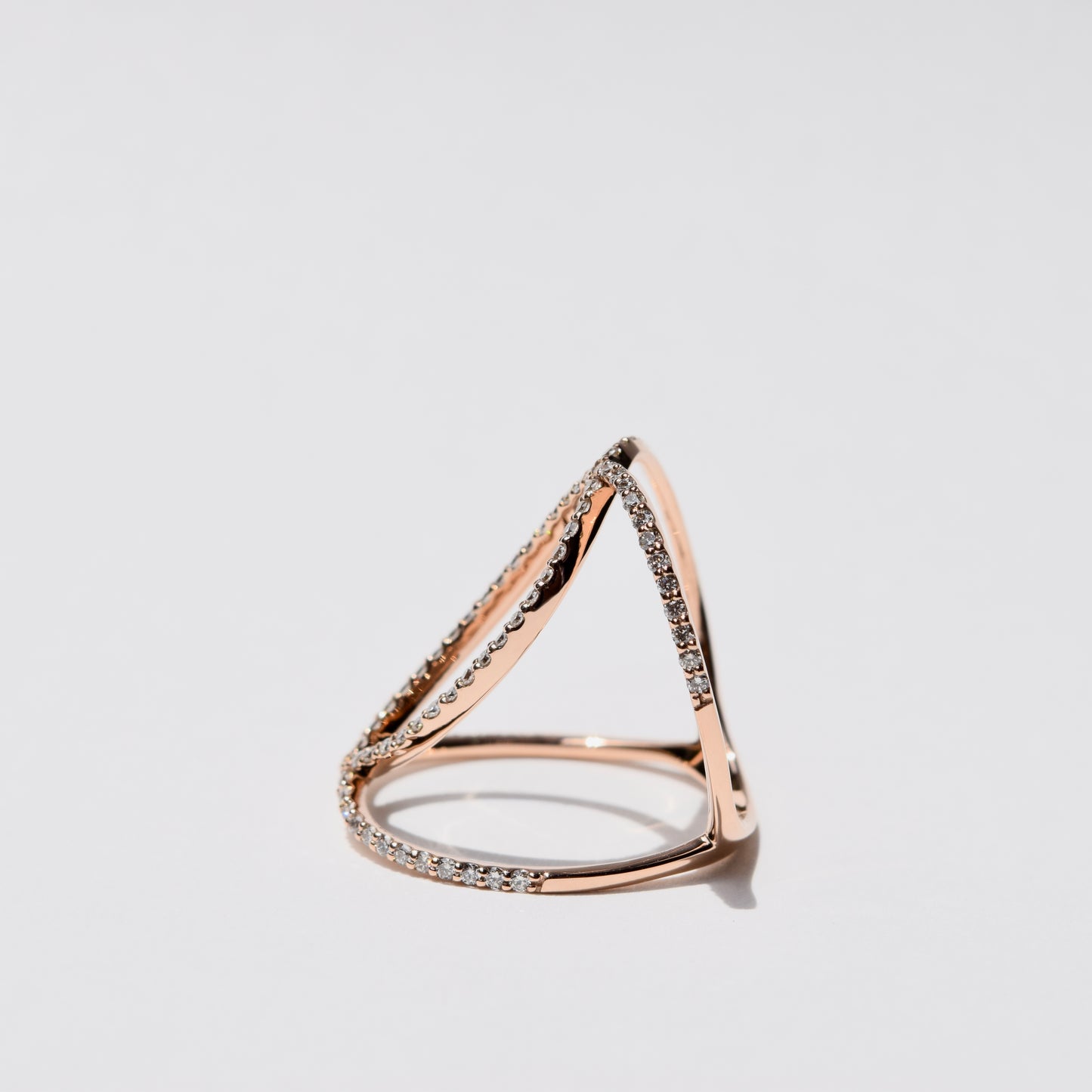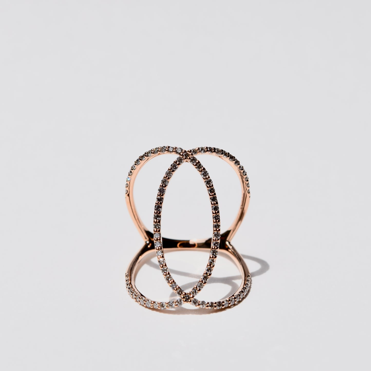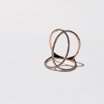 柔らかな色合いのK18PGの交差ラインと輝くダイヤモンドが織りなす立体的なフォルムは、まるで宮廷のドレスのように優美。