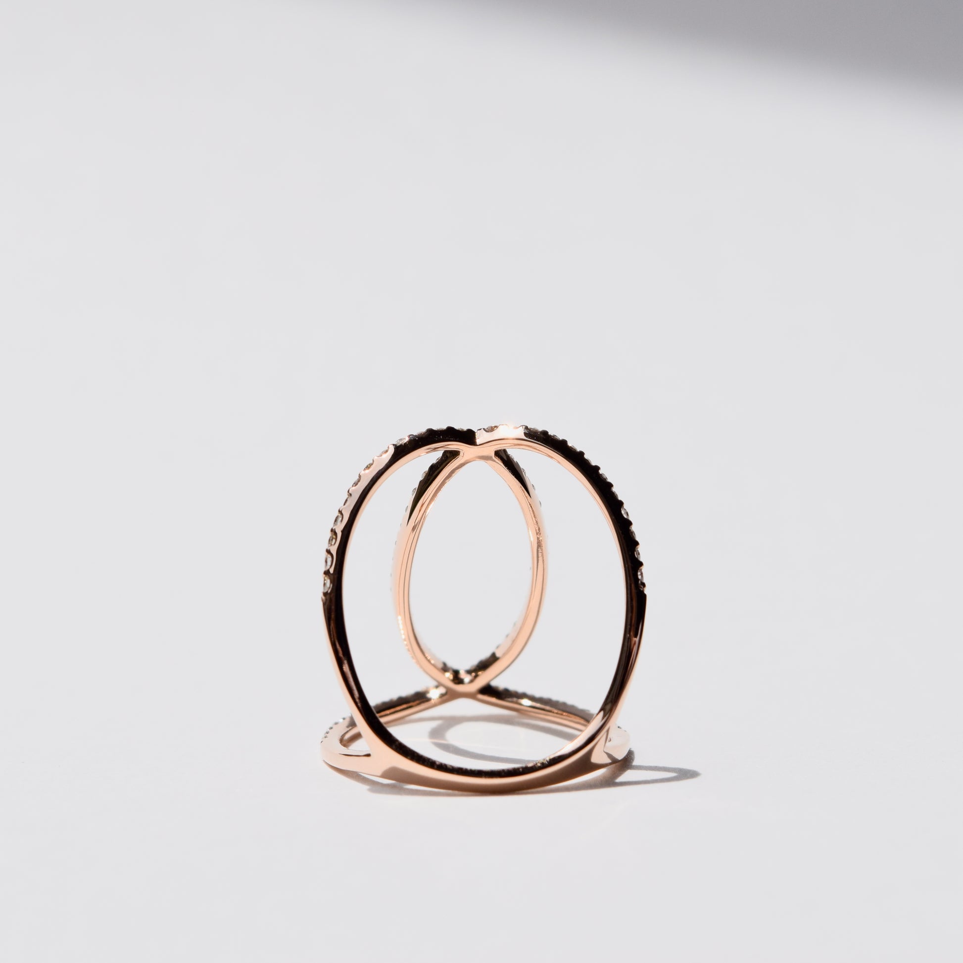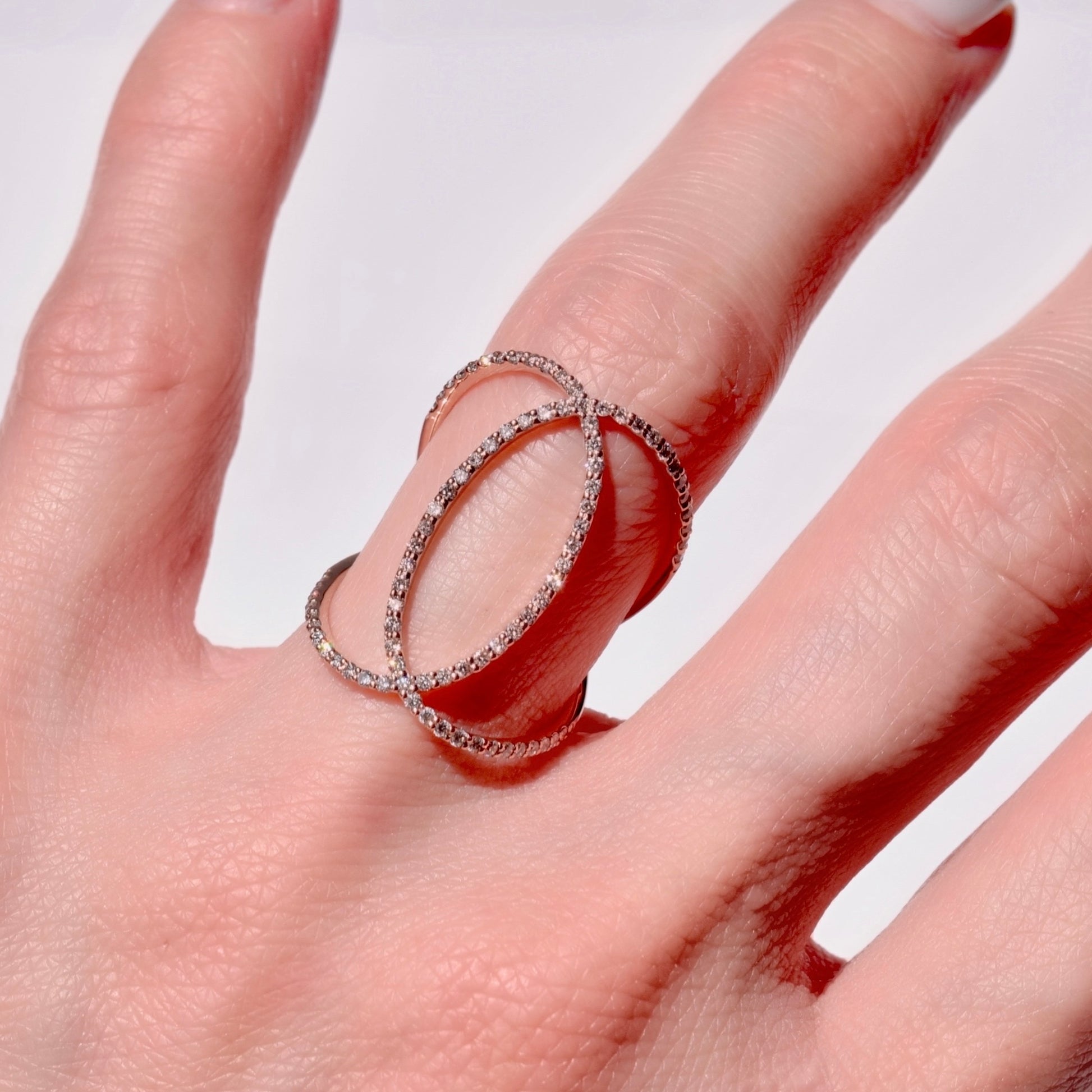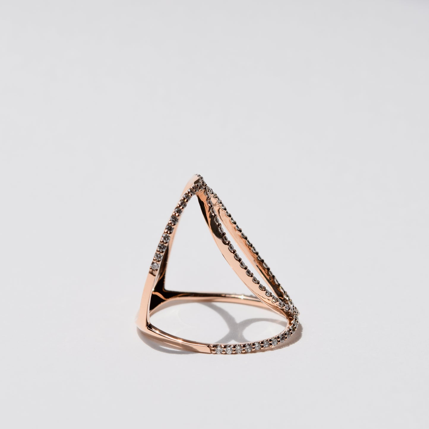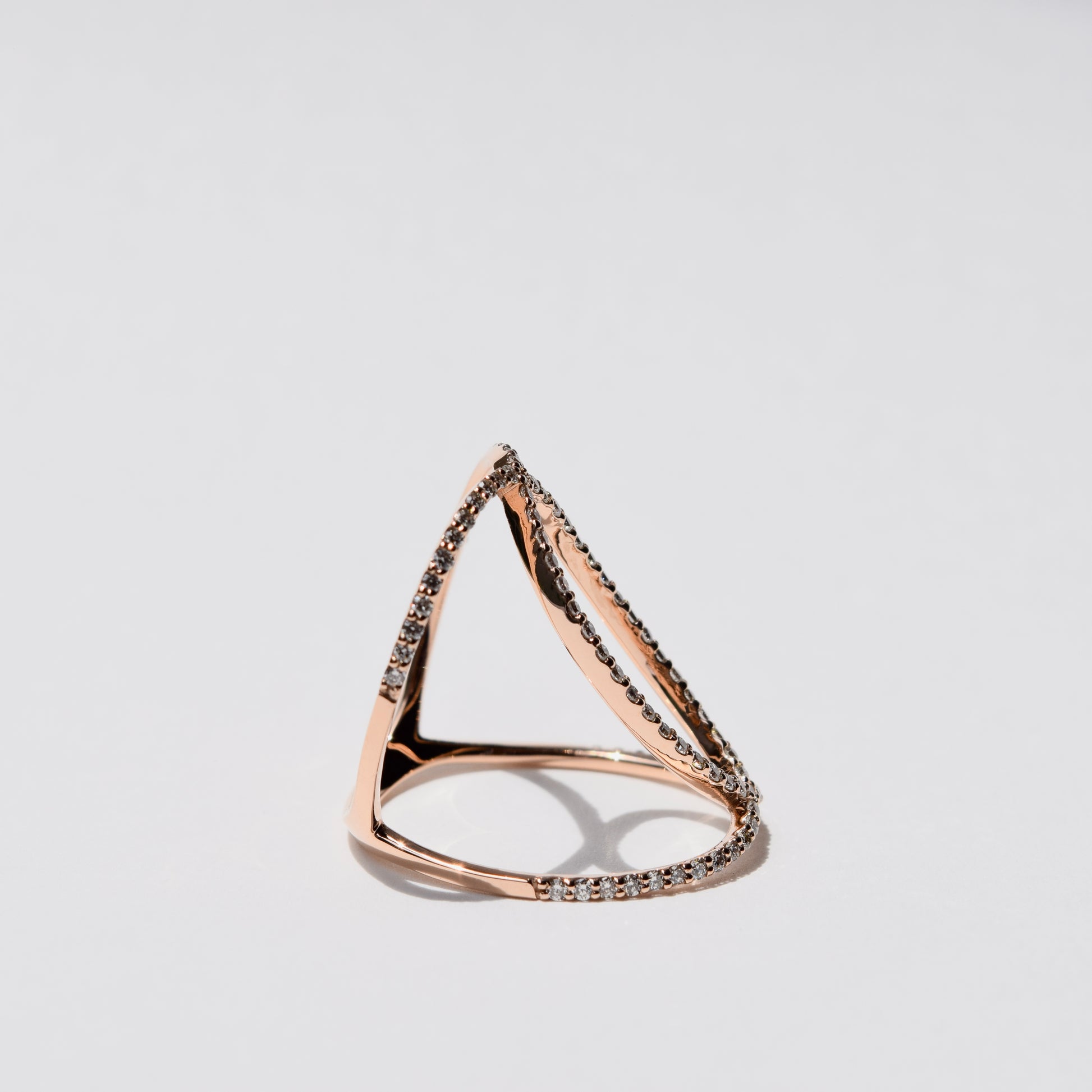 柔らかな色合いのK18PGの交差ラインと輝くダイヤモンドが織りなす立体的なフォルムは、まるで宮廷のドレスのように優美。