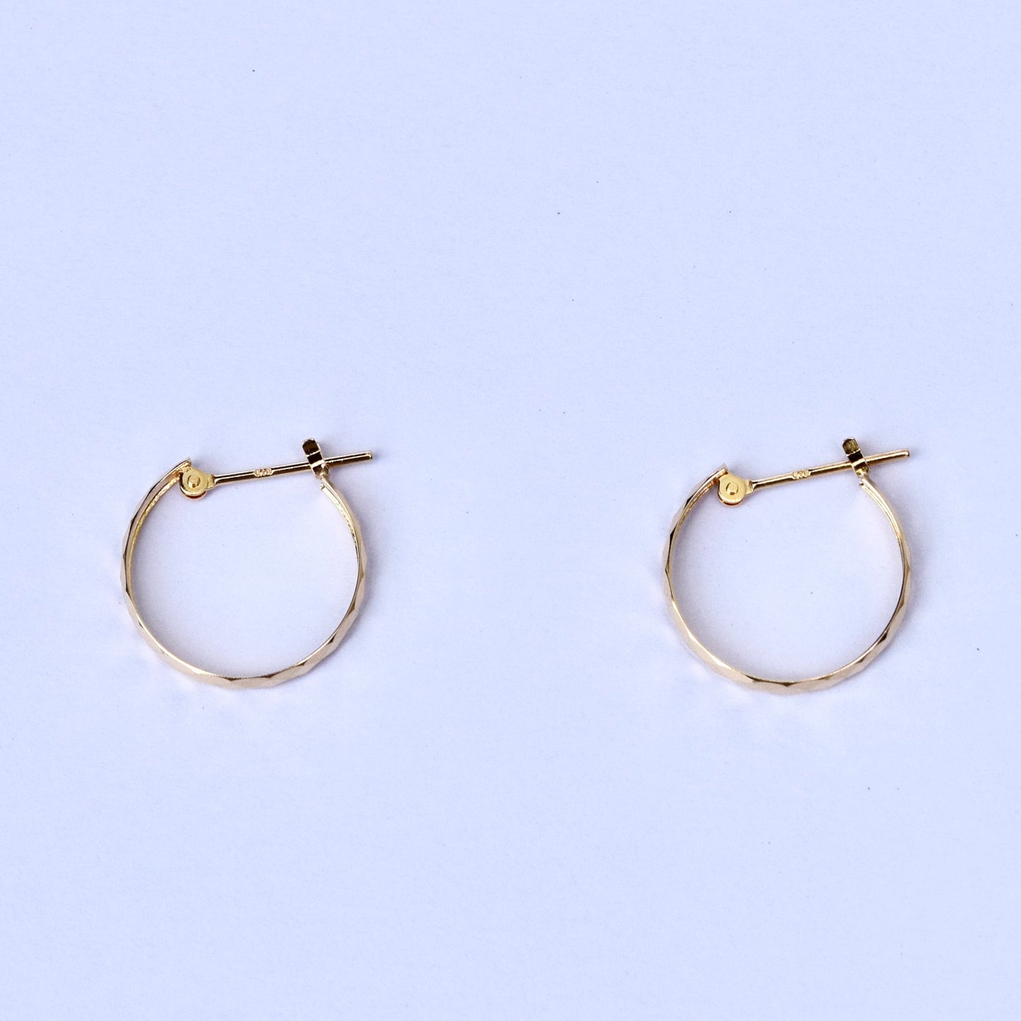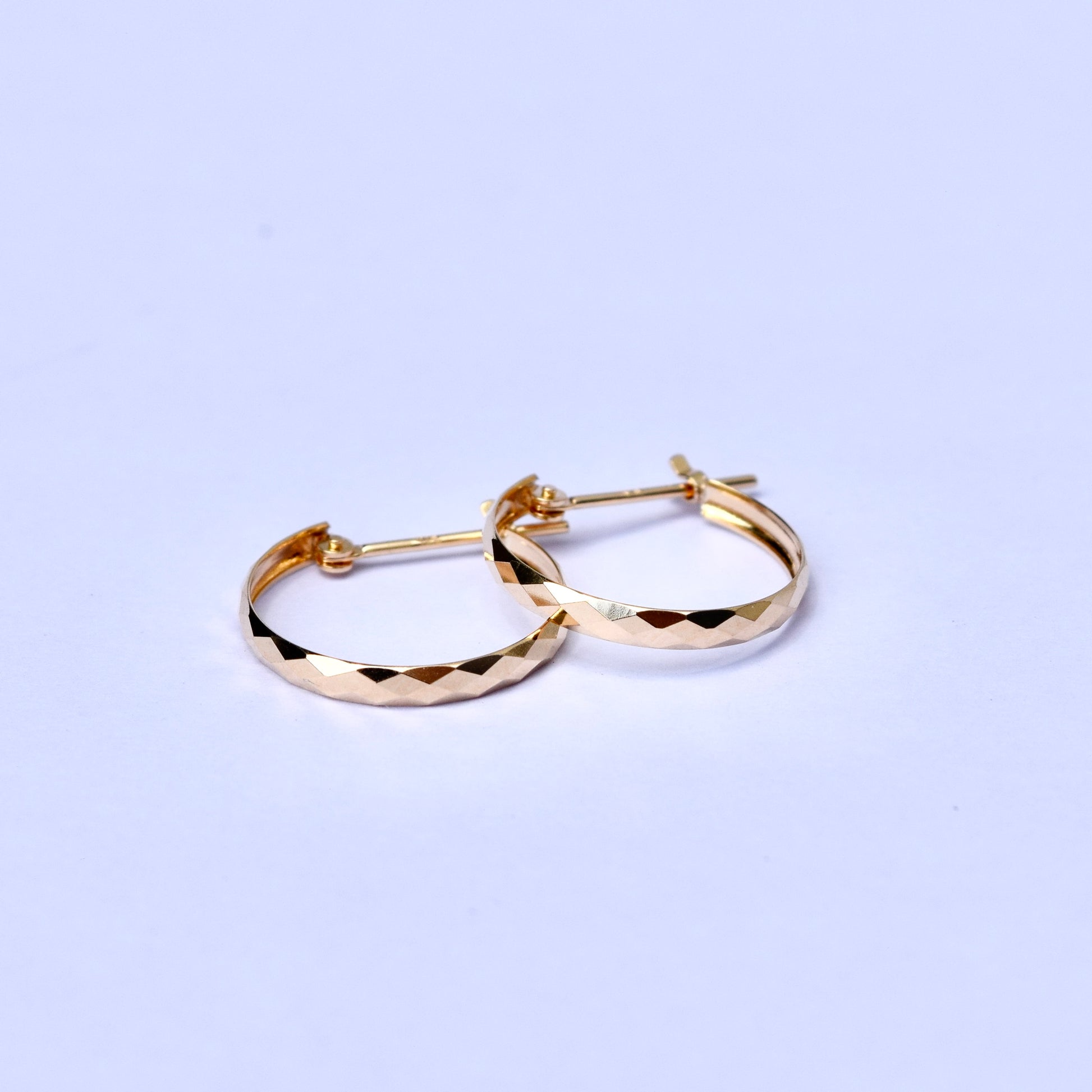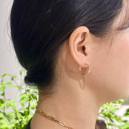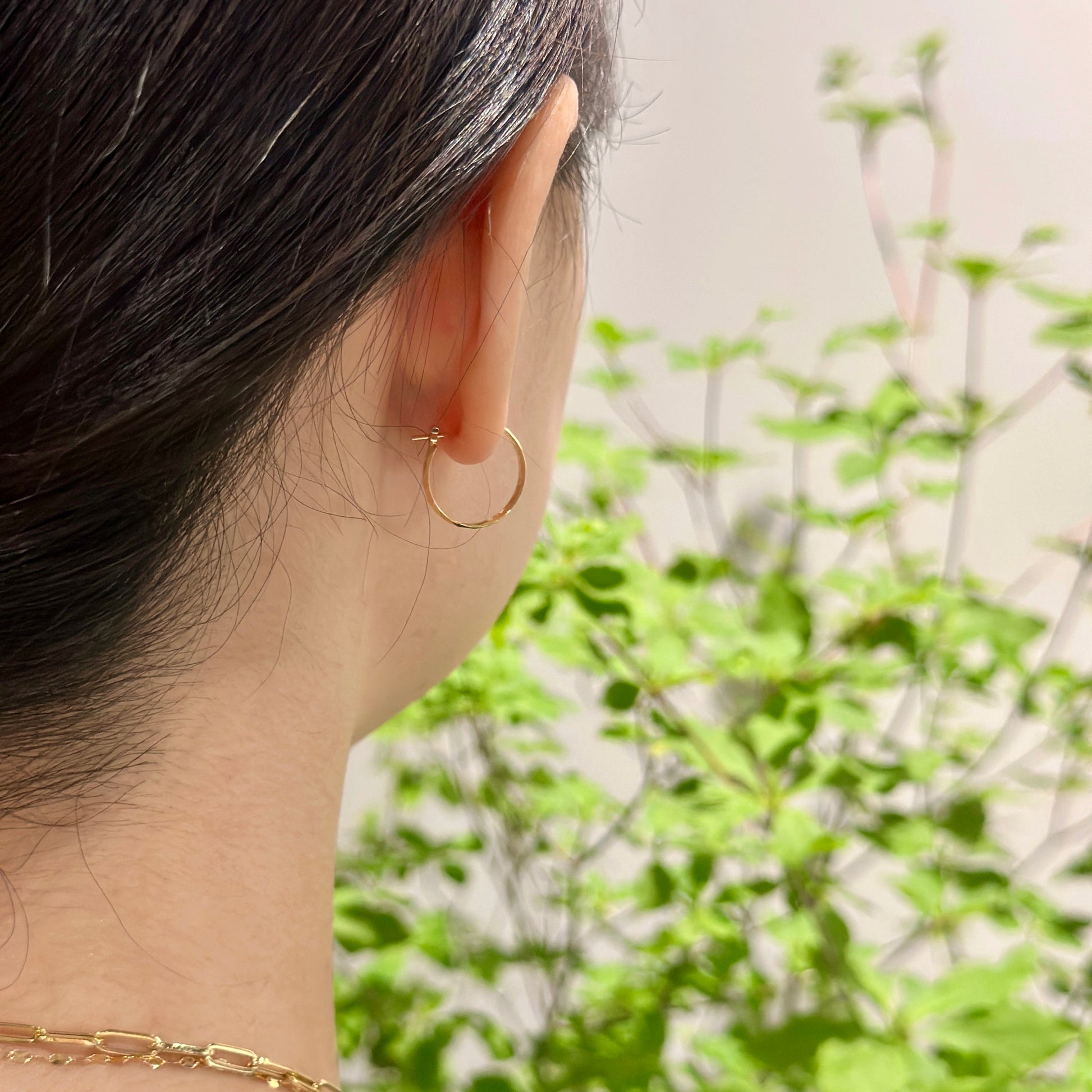 上品な輝きを放つ、K18イエローゴールドのフープピアス。