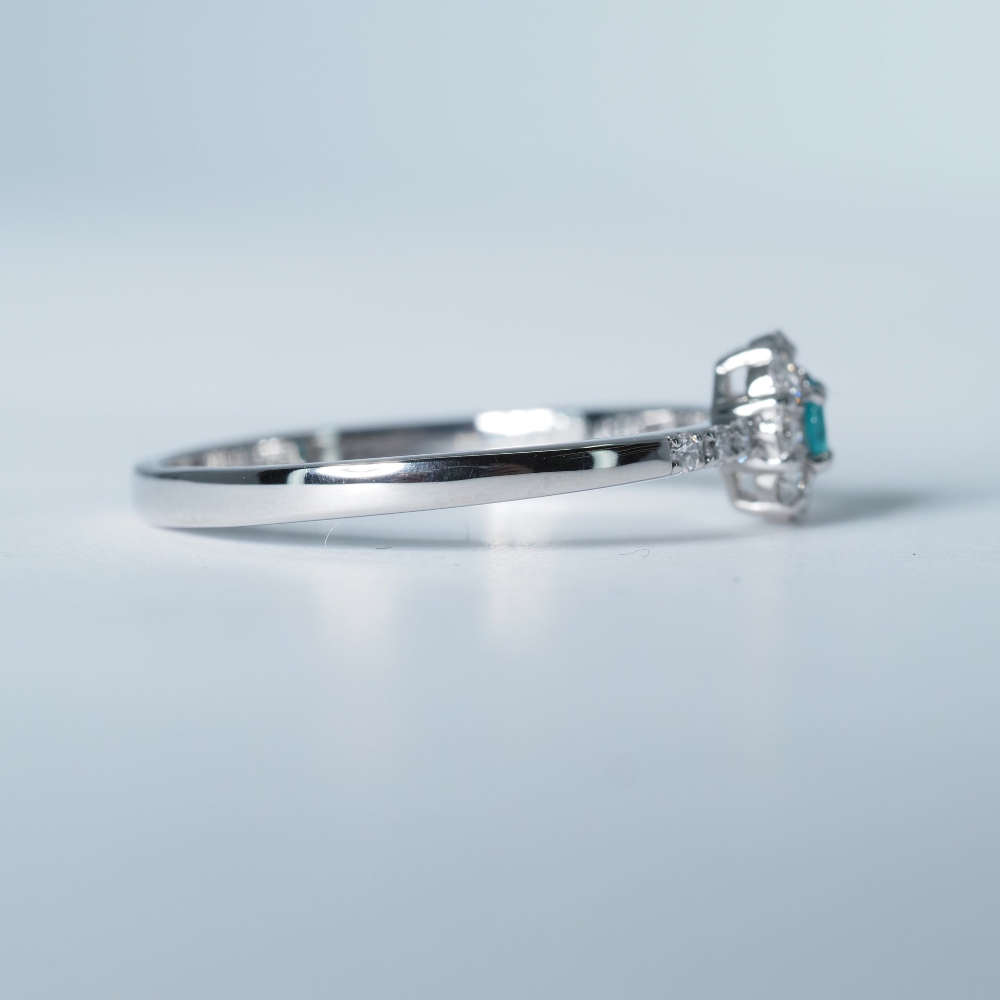 希少性の高いパライバトルマリンをセンターに配した、気品あふれるプラチナリング。
