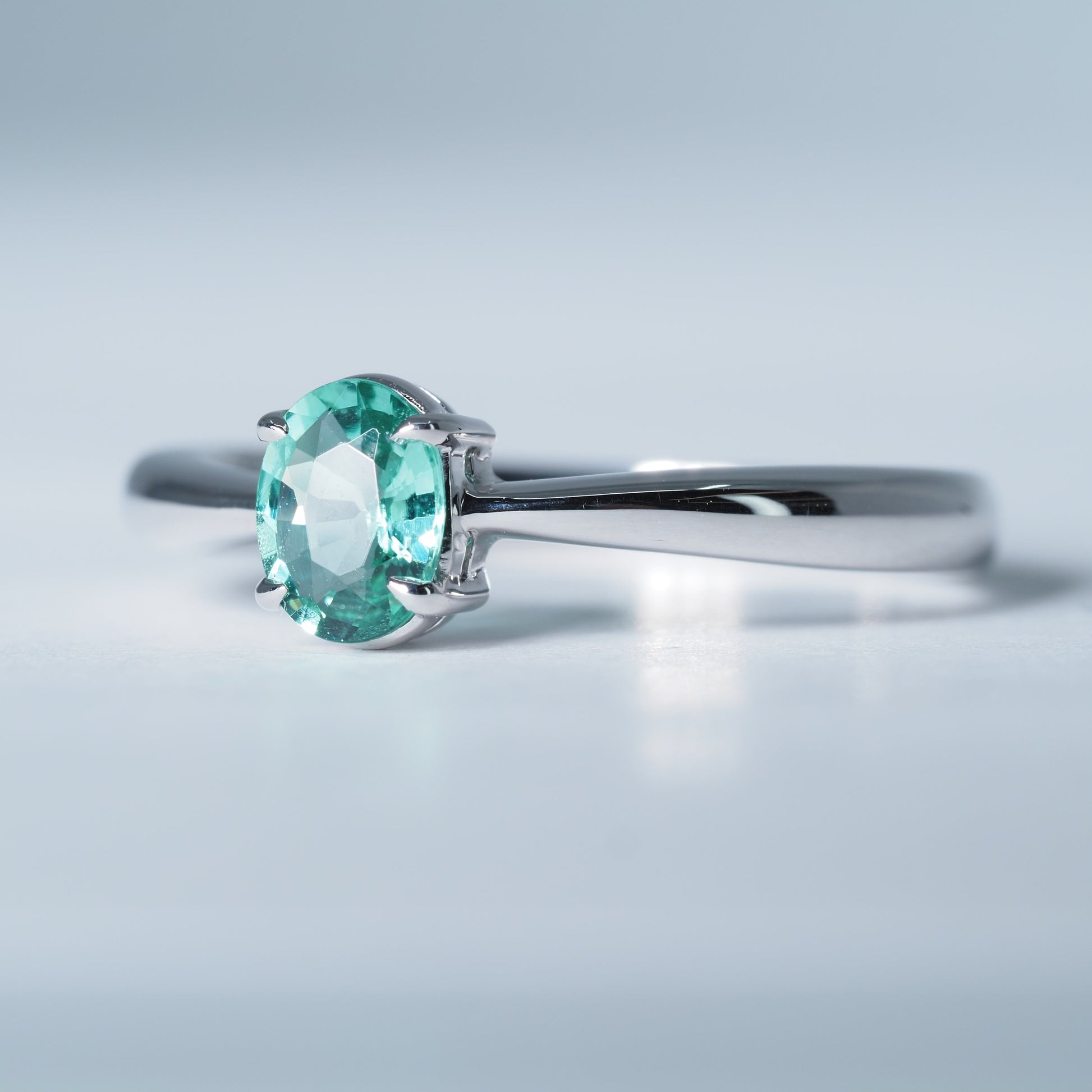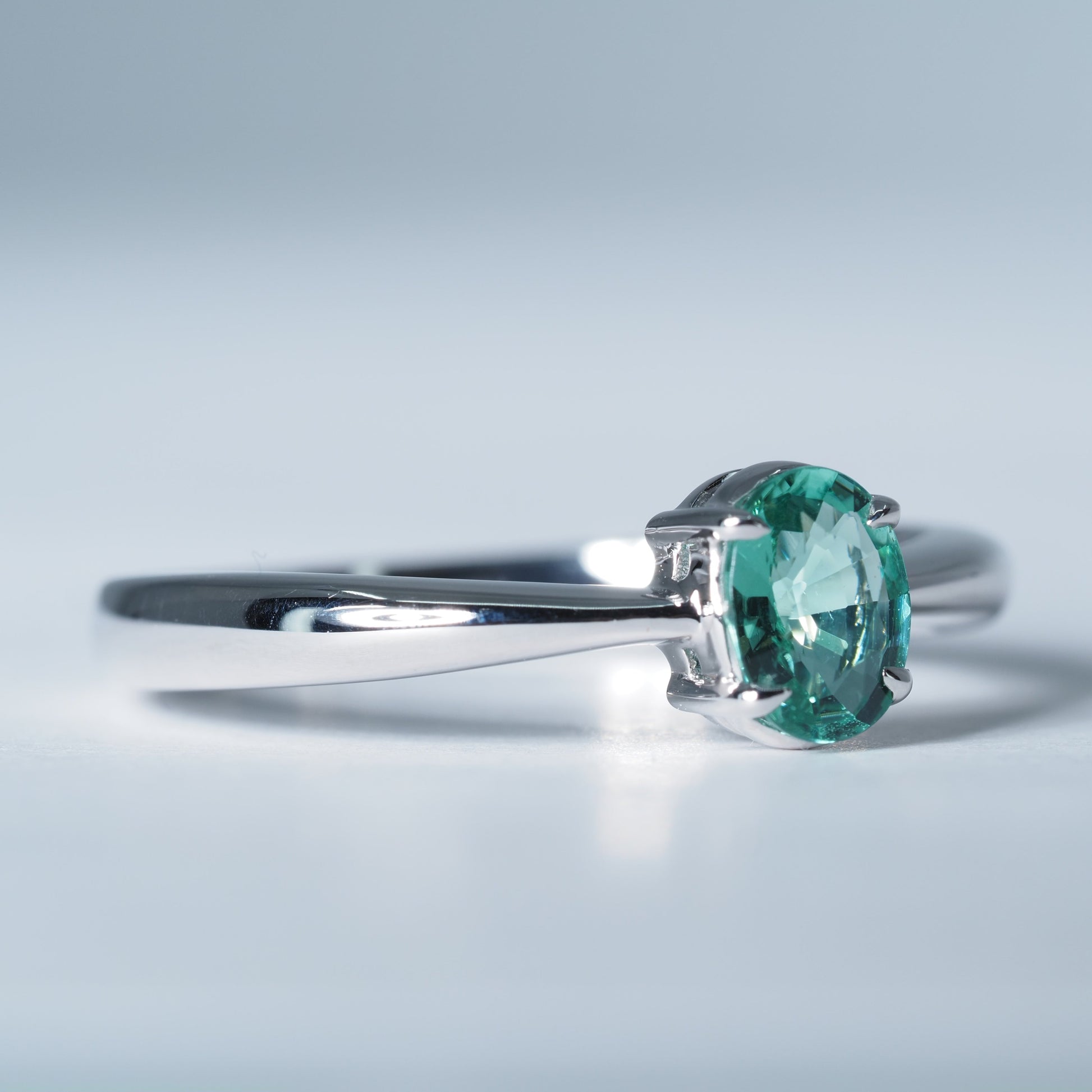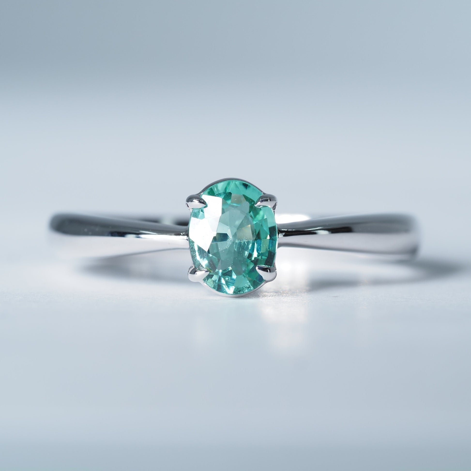 K18ホワイトゴールドの洗練された輝きに、みずみずしい色彩のトルマリンをあしらったリング。