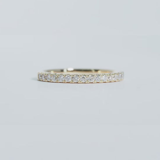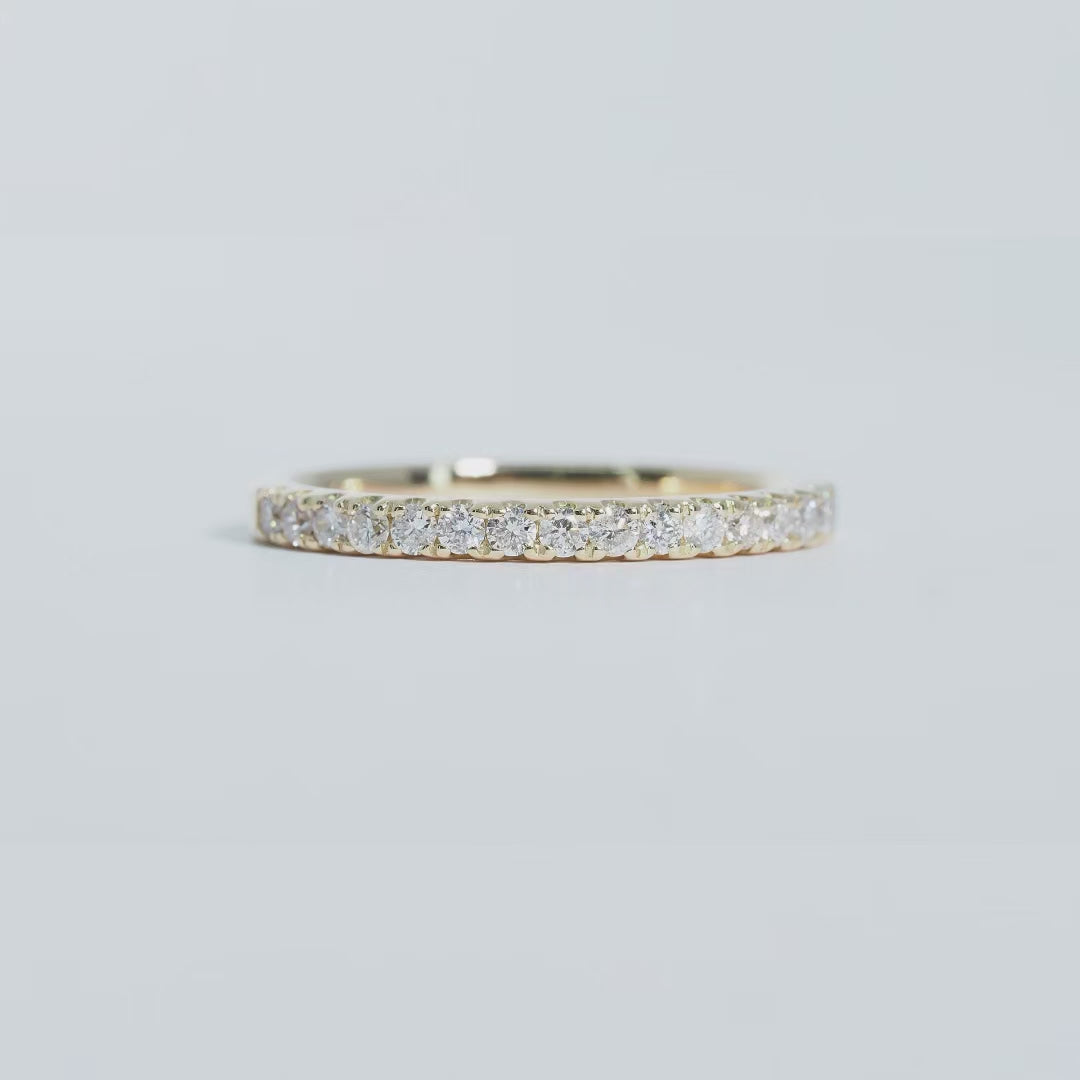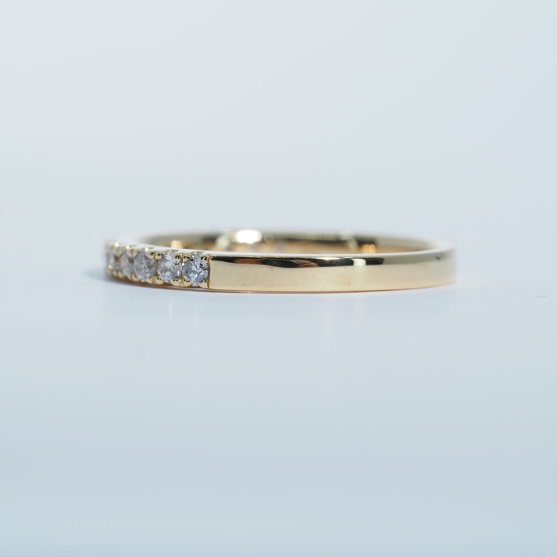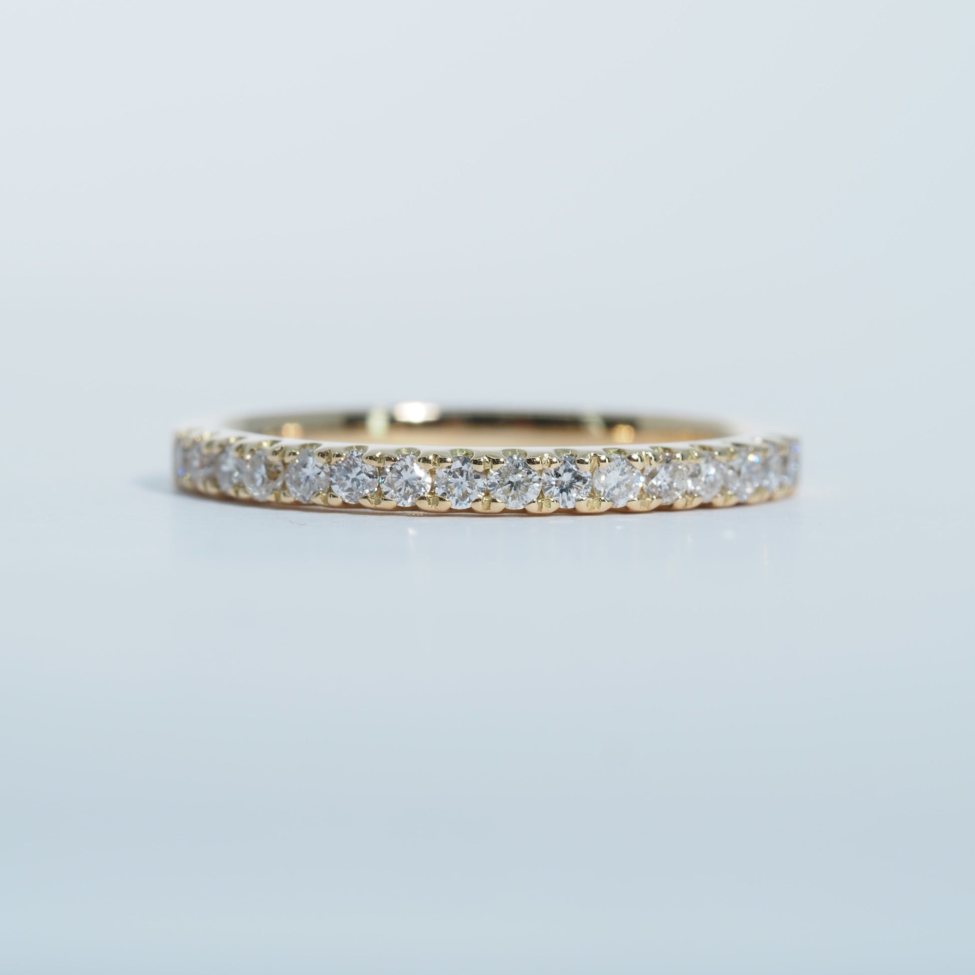 K18の美しいゴールドに、厳選されたダイヤモンドを連ねたハーフエタニティリング。