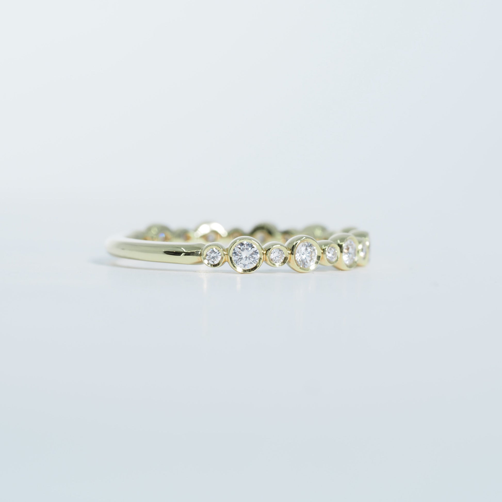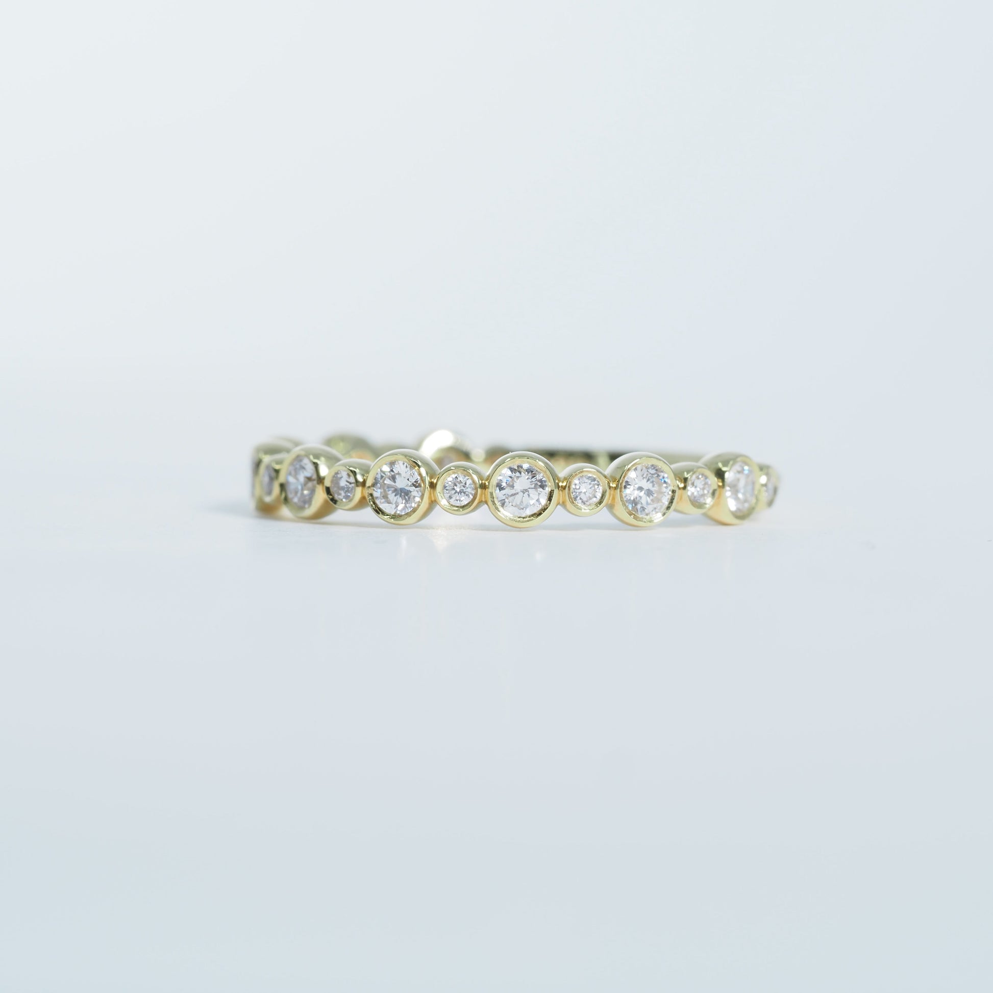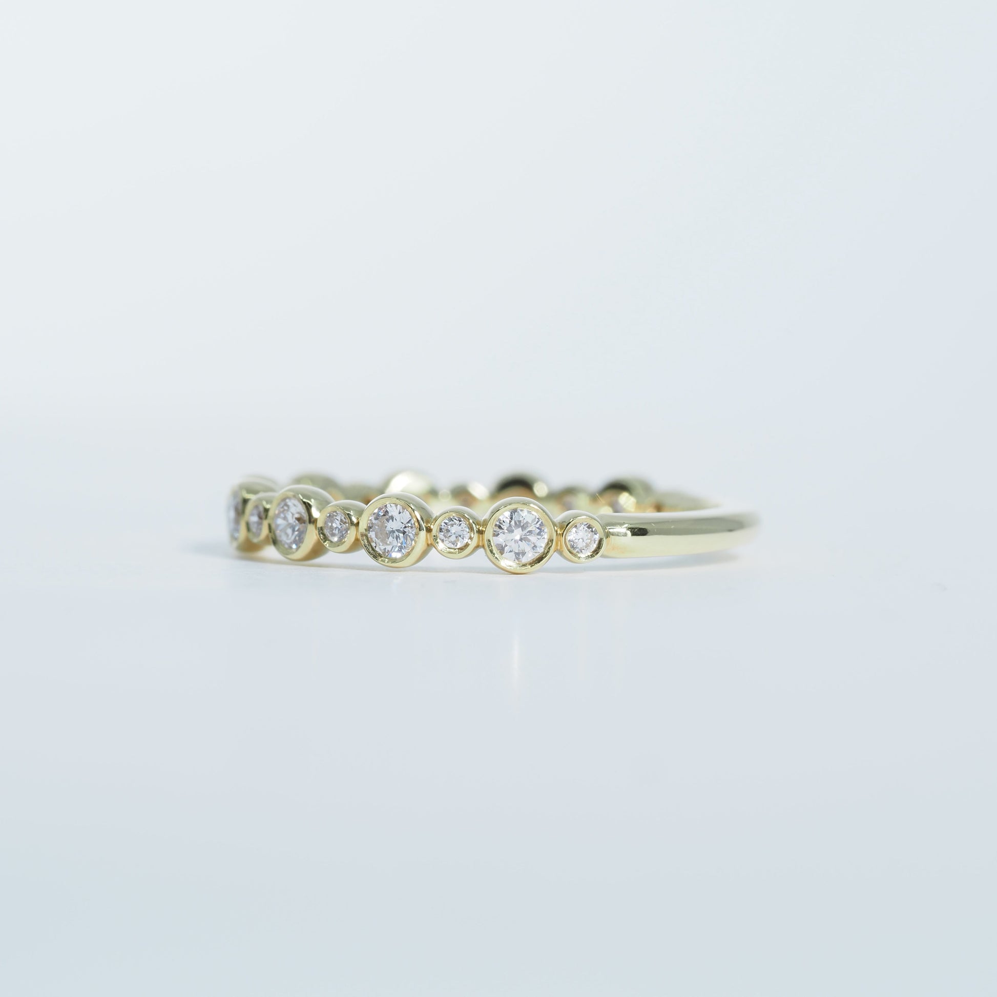 一粒一粒を包み込むようなベゼルセッティングが、ダイヤモンドの輝きを引き立てながら、なめらかな着け心地を叶えます。