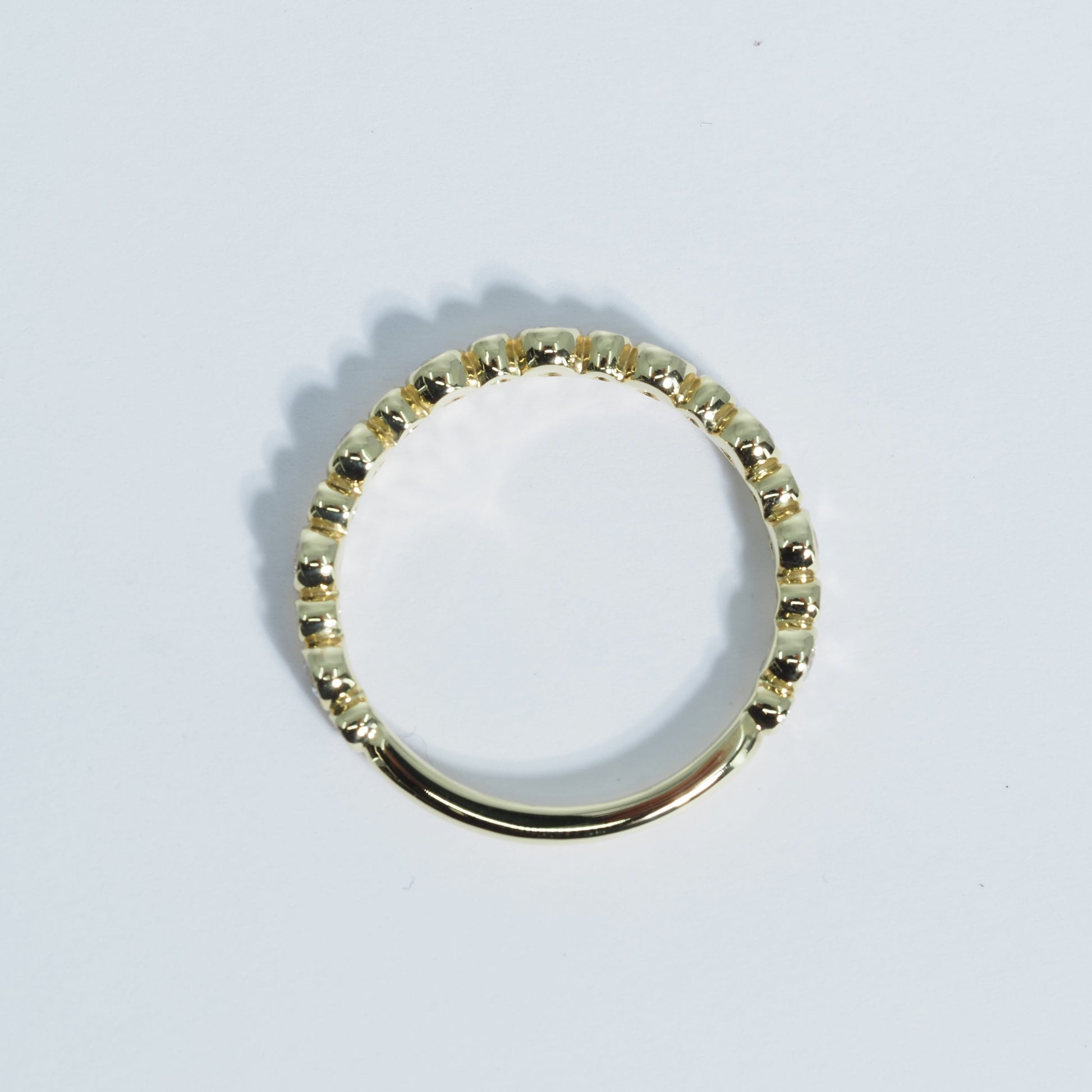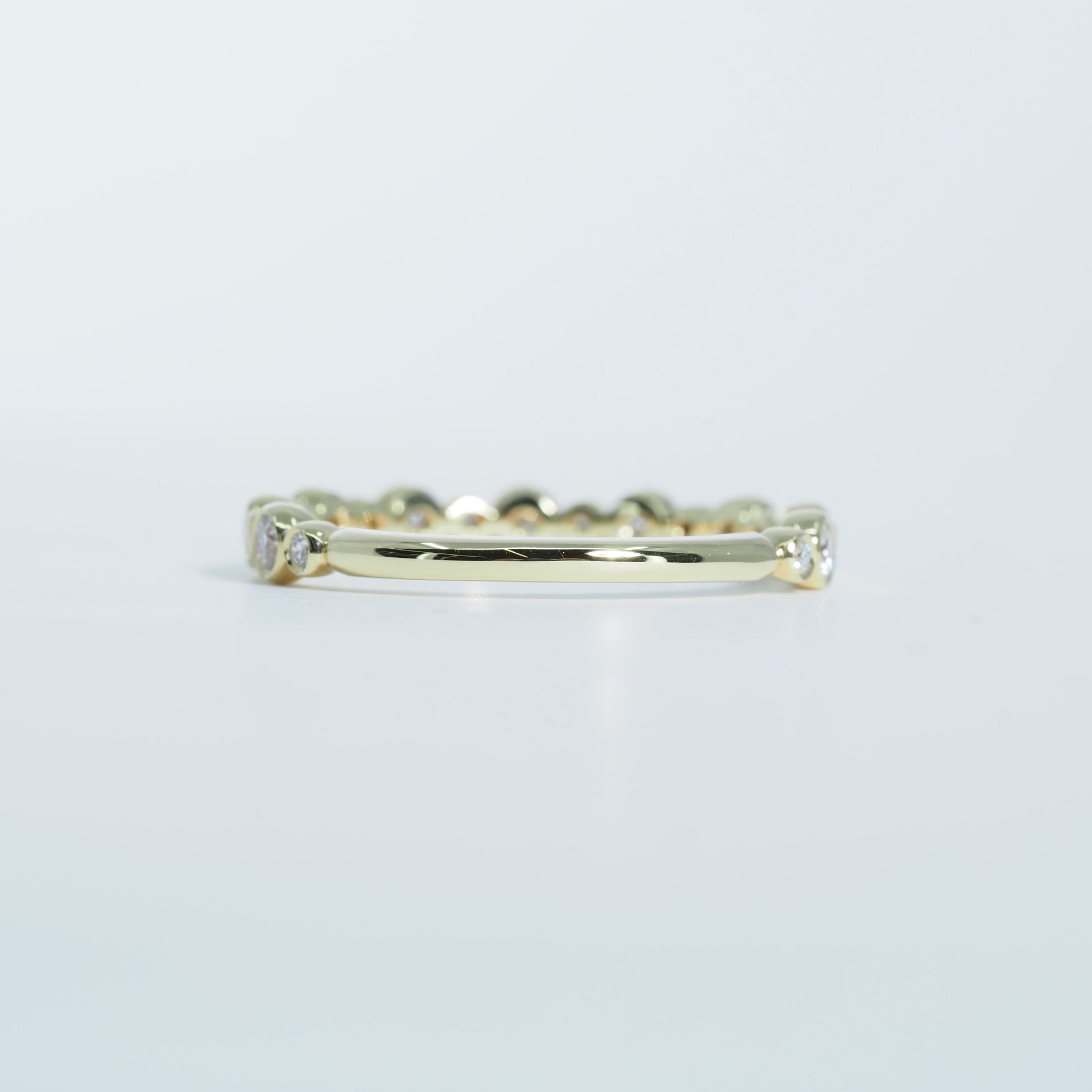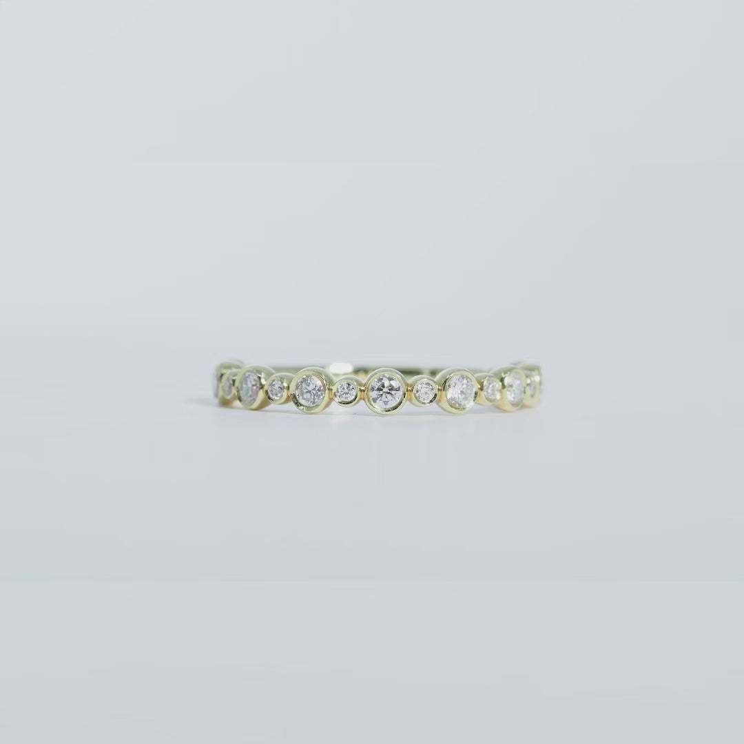 一粒一粒を包み込むようなベゼルセッティングが、ダイヤモンドの輝きを引き立てながら、なめらかな着け心地を叶えます。