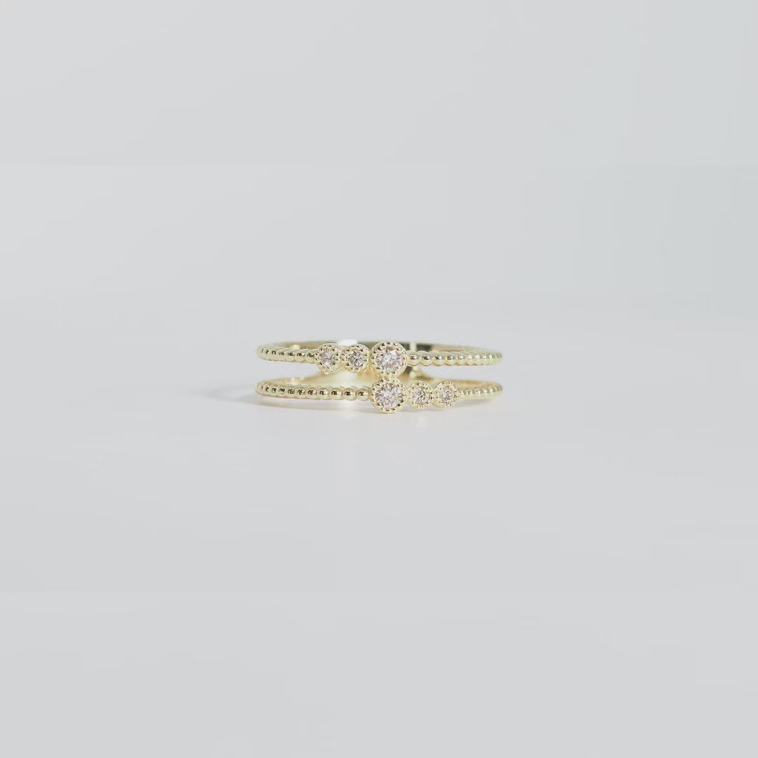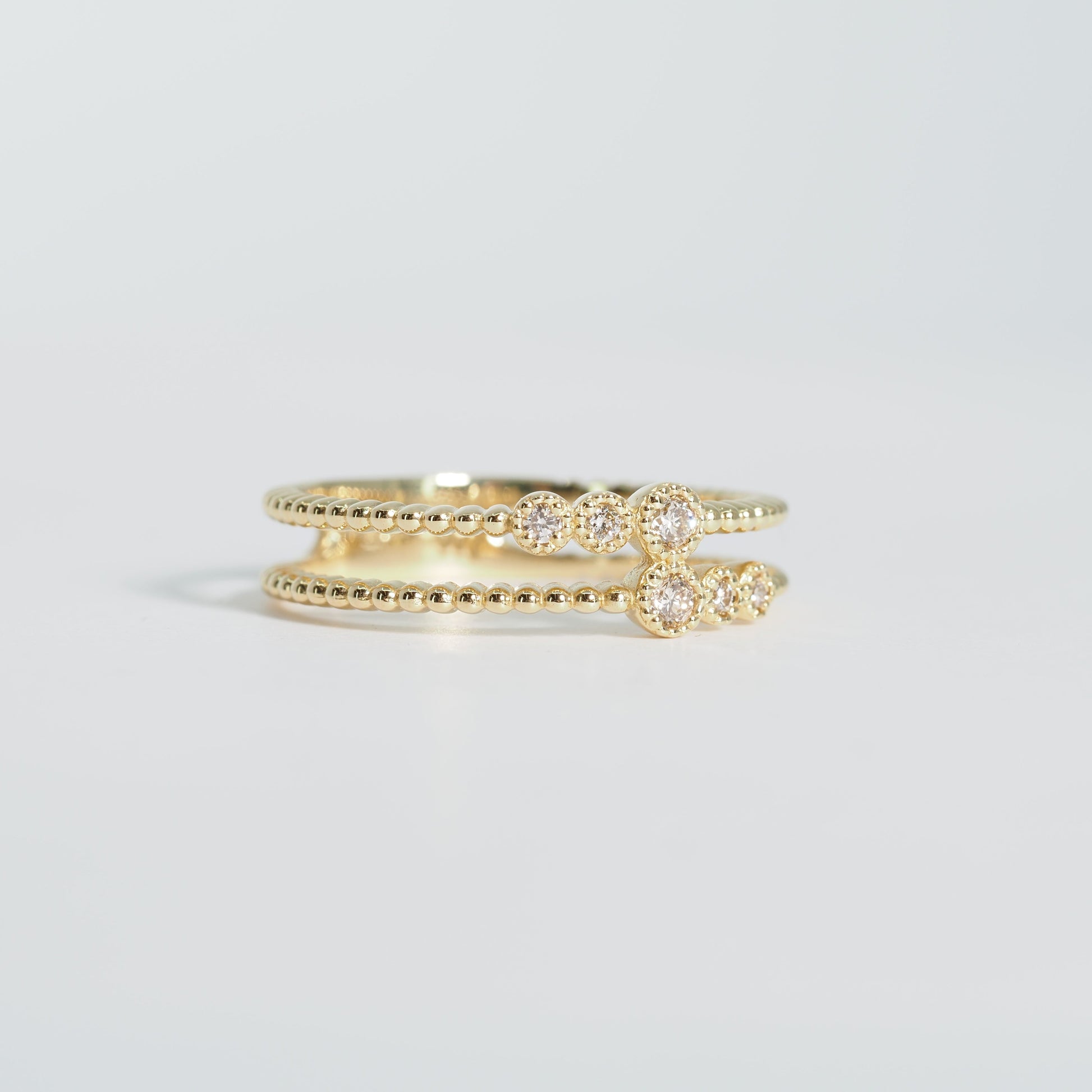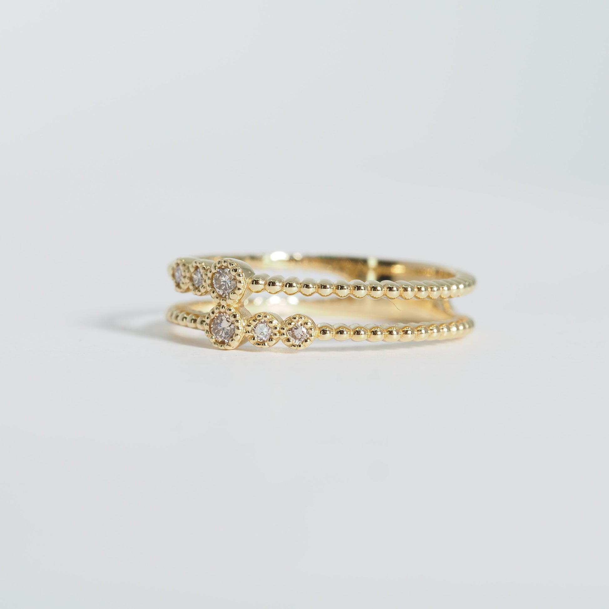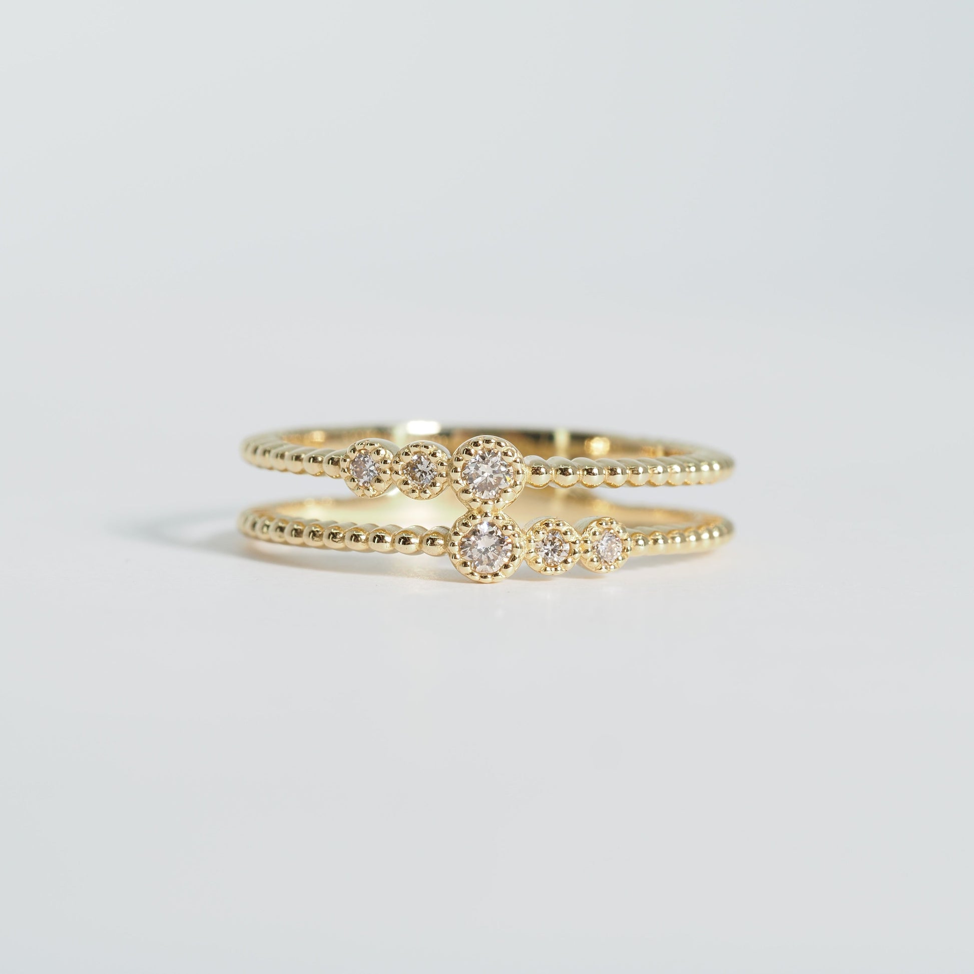 重ね着けをしているようなデザインのリングです。