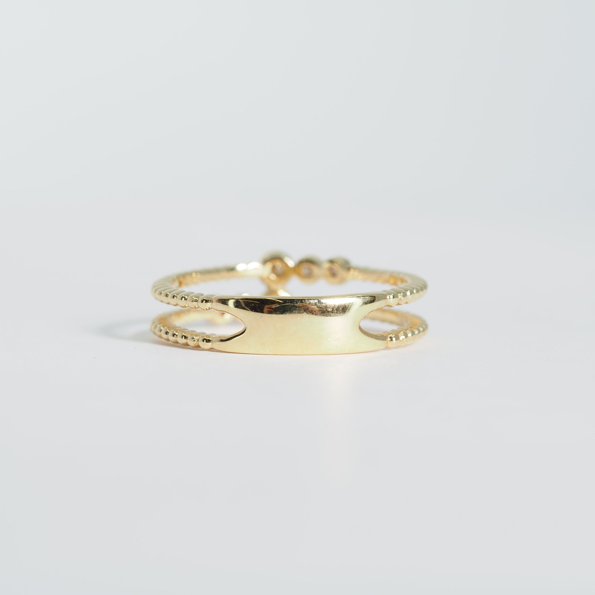 2本のリングを重ねたような立体感がありながら、